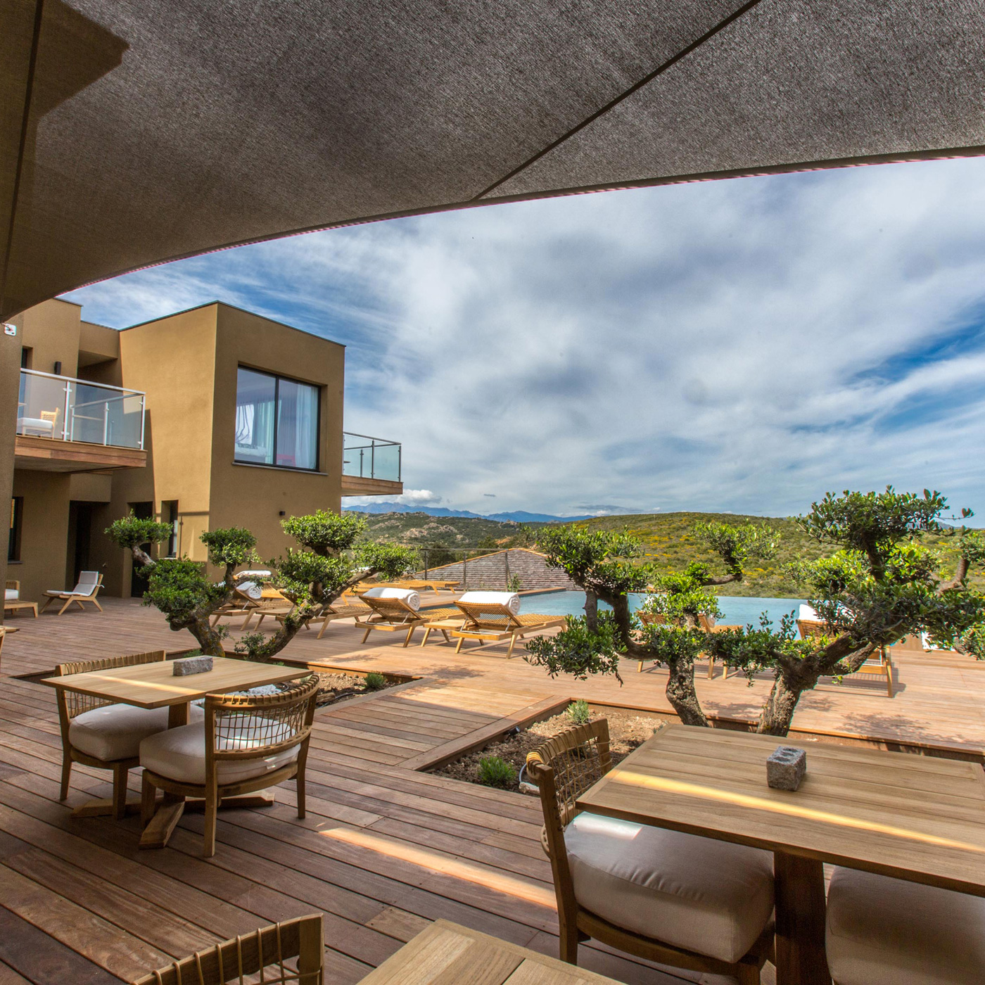C’est dans ce décor d’exception, que sont nés l’Hôtel Version Maquis Santa Manza 4 étoiles et l’Hôtel & Spa Version Maquis Citadelle 5 étoiles. Avec respectivement 11 et 22 chambres ainsi qu’un Spa aux prestations uniques en Corse, ces boutiques hôtels vous invitent à la détente pour un séjour en toute intimité.
